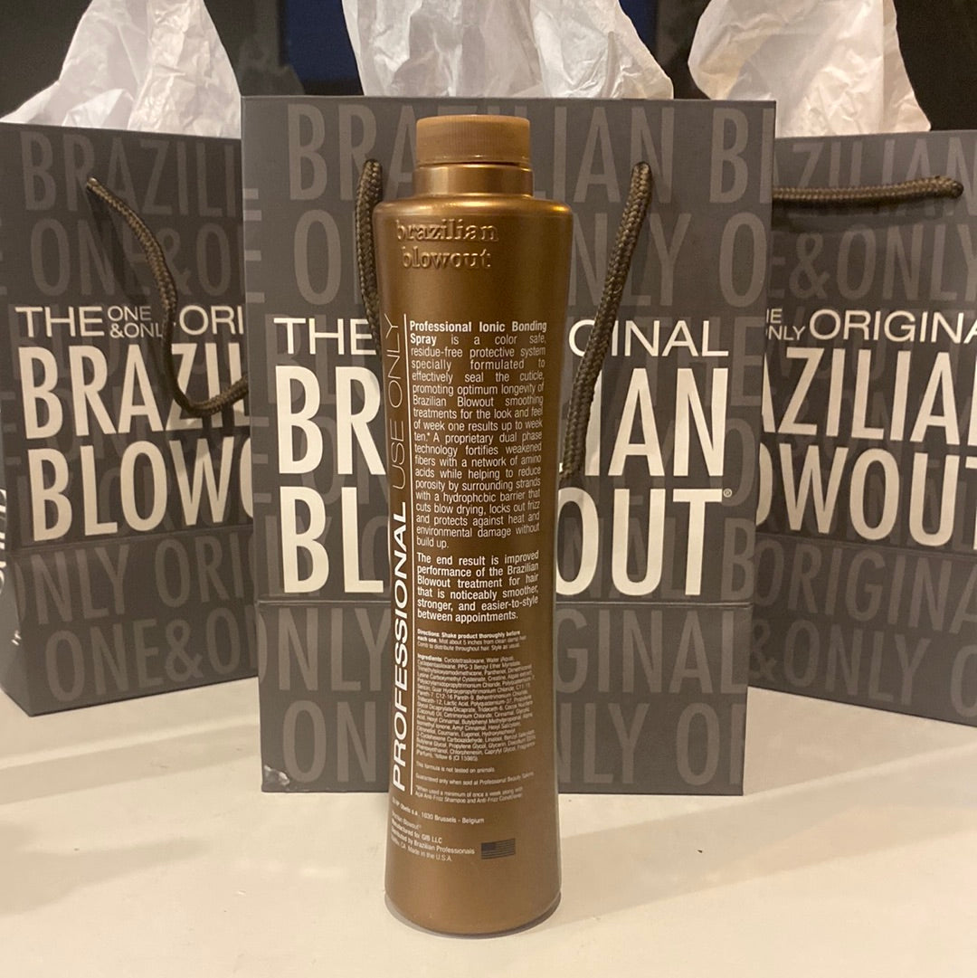 Ionic Bonding Spray is a color safe, residue, free protective system specially formulated to effectively seal, the cuticle, promoting optimum, longevity of Brazilian Blowout Smoothing treatments for the look and feel of week one results up to week ten of a proprietary dual phase technology, fortifies weak end fibers with a net work of amino acids, while helping to reduce porosity by surrounding strands, with a hydrophobic barrier, that cuts blow drying locks out frizz and protects against heat and environmental damage without build up.